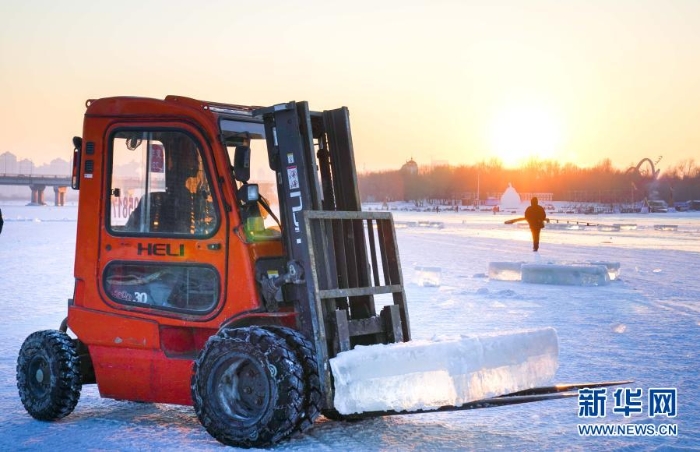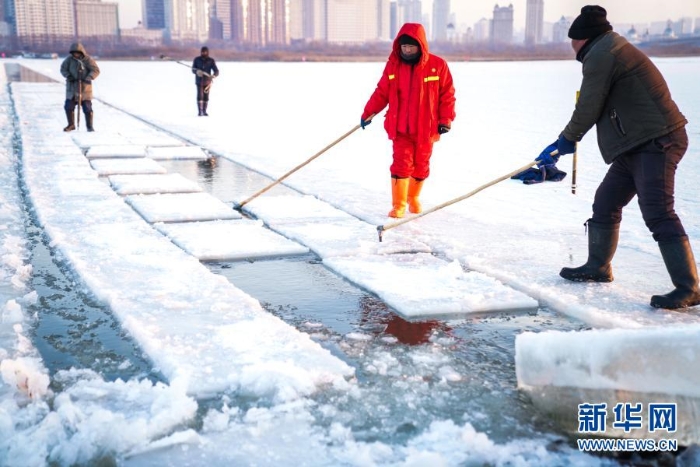 當(dāng)日是大雪節(jié)氣,第二屆哈爾濱采冰節(jié)開幕。人們從松花江采冰,將冰塊送往哈爾濱市重要景點(diǎn)和大街小巷。