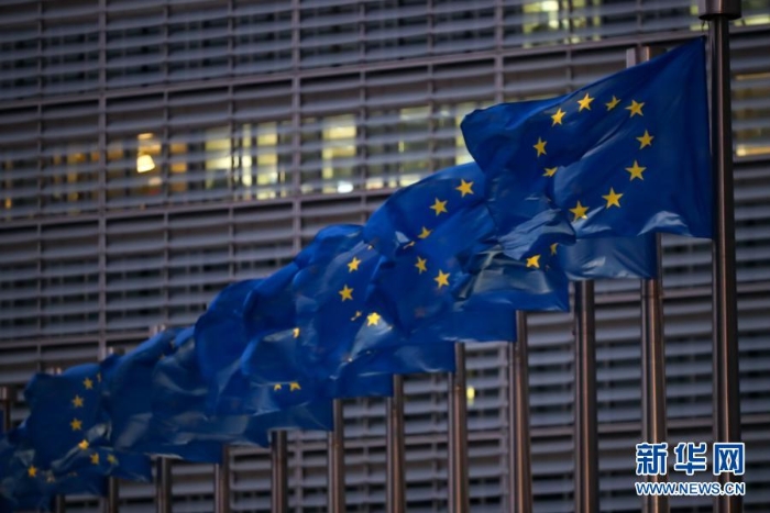 這是12月24日在比利時布魯塞爾拍攝的歐盟委員會總部大樓前的歐盟旗幟。新華社記者 張鋮 攝