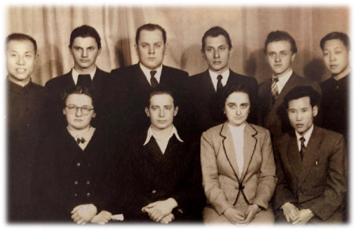 ▲1956年,彭士祿(前排右一)在莫斯科動力學(xué)院核動力專業(yè)進(jìn)修深造