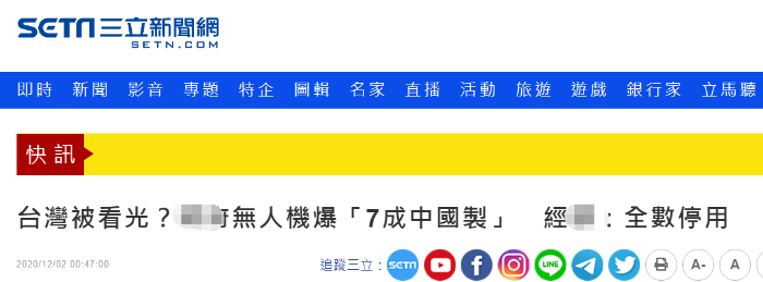 【環(huán)球網(wǎng)報(bào)道 記者 趙友平】除了臺(tái)“立委”發(fā)現(xiàn)專案信件發(fā)送自“我的華為手機(jī)”,昨天(12月1日)臺(tái)媒還在炒作大陸無人機(jī)。多家臺(tái)媒稱,民進(jìn)黨籍“立委”何欣純1日質(zhì)詢時(shí)聲稱,全臺(tái)各“政府”無人機(jī)中,有超過七成是中國(大陸)制,“恐有資安疑慮”。對(duì)此,島內(nèi)網(wǎng)友一句話評(píng)論扎心:“(有本事)臺(tái)灣自己做啊!技術(shù)趕得上大疆?差遠(yuǎn)了!”