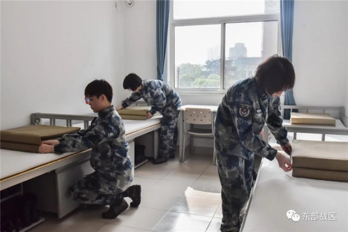 早晨的時光格外倉促。半個小時的隊列訓練后,留給話務女兵洗漱以及整理內(nèi)務的時間只有20分鐘了,疊“豆腐塊”、打掃室內(nèi)外衛(wèi)生、洗漱開飯……時間雖緊,分工明確,標準不降,一切井然有序。女兵們雷厲風行的作風正是在這日復一日,分秒必爭的嚴明制度下形成的。