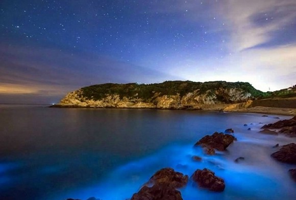 馬祖列島在春夏之交大量出現(xiàn)夜光藻,當(dāng)?shù)厝朔Q“藍(lán)眼淚” 圖/連江縣政府提供