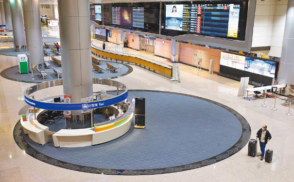 美國(guó)《紐約時(shí)報(bào)》報(bào)導(dǎo)指出,國(guó)際專(zhuān)家對(duì)臺(tái)灣防疫的做法打上問(wèn)號(hào),稱(chēng)這么做可能讓臺(tái)灣在經(jīng)濟(jì)或政治上受到孤立。圖為桃園國(guó)際機(jī)場(chǎng)入境大廳空蕩蕩。(圖片來(lái)源:臺(tái)灣《中時(shí)電子報(bào)》資料照片)
