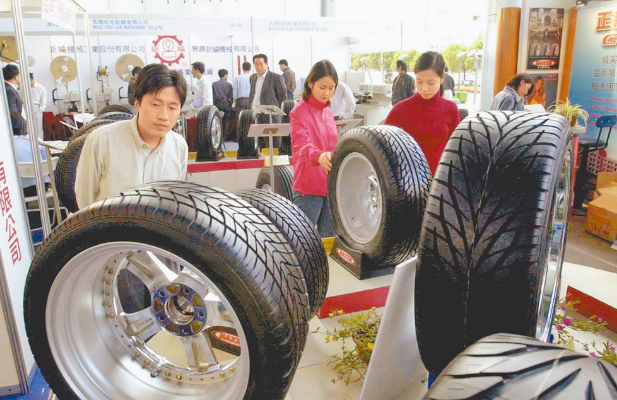 美國商務(wù)部裁定對(duì)臺(tái)灣輪胎課征反傾銷稅率為52.42%~98.44%。圖為大陸民眾參觀臺(tái)灣橡膠業(yè)者的輪胎產(chǎn)品。(新華社)