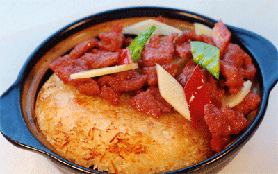 煲仔飯歷史悠久,2000多年前《禮記注疏》等書記載,周代八珍中的第一珍、第二珍和煲仔飯做法一樣,只不過改用黃米作原料罷了,可見在當時是很名貴的。按韋巨源的《食譜》上所記,到了唐代叫“御黃王母飯”,是編縷(肉絲)卵脂(蛋)蓋飯面表雜味做的,因而更具風味。