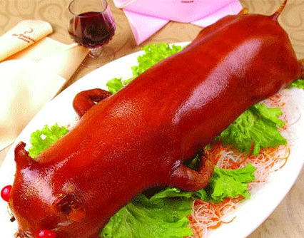 在南北朝時,賈思勰已把烤乳豬作為一項重要的烹飪技術(shù)成果而記載在《齊民要術(shù)》中了。他寫道:“色同琥珀,又類真金,入口則消,壯若凌雪,含漿膏潤,特異凡常也?!币磺陌俣嗄昵?,中國漢族勞動人民烹飪技藝已有這樣高深的造詣,實令世人贊嘆。