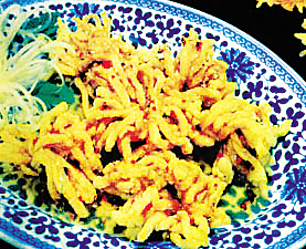 “雞茸金絲筍”是福建福州較早著名的菜肴之一,在筵席上一向列為上品。