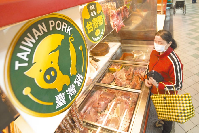 圖為貼有產(chǎn)地標(biāo)章的豬肉攤商。(圖片來源:臺灣《中時電子報》資料照片)