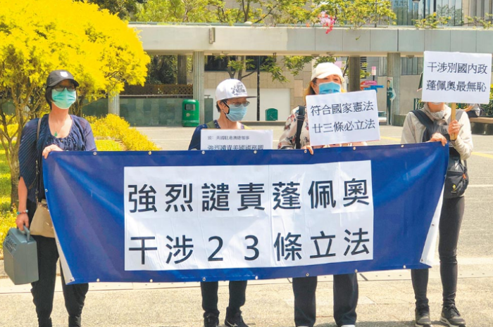 香港市民強(qiáng)烈譴責(zé)美國(guó)國(guó)務(wù)卿蓬佩奧干涉香港就基本法第23條立法,從中環(huán)遮打花園自發(fā)游行至美國(guó)駐香港領(lǐng)事館抗議。(中新社)