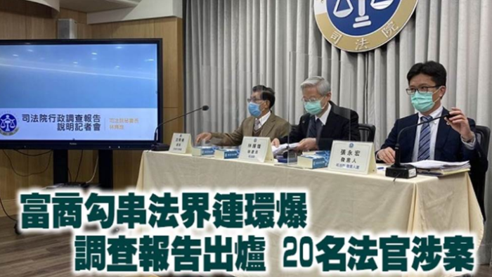 前臺(tái)灣“公懲會(huì)”委員長石木欽關(guān)說案,牽扯出島內(nèi)富商翁茂鐘長年宴請、饋贈(zèng)多名司法檢調(diào)官員的司法重大丑聞。臺(tái)當(dāng)局行政機(jī)構(gòu)負(fù)責(zé)人蘇貞昌痛批本案是“內(nèi)行人的玩法行為”,下令徹查后,臺(tái)“司法院”、法務(wù)部門18日公布調(diào)查報(bào)告,認(rèn)定40名現(xiàn)、退職官員與翁有不當(dāng)往來;在職者7位法官、4位檢察官、2位調(diào)查官。其中林奇福等8名法官、檢察官將移送“監(jiān)察院”審查。