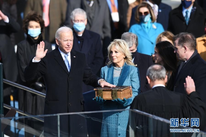 當(dāng)日,美國當(dāng)選總統(tǒng)、民主黨人拜登在華盛頓國會山舉行的就職典禮上宣誓就任美國第46任總統(tǒng)。