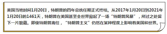 其實,在發(fā)表告別演講、搬離白宮之后,特朗普作為美國總統(tǒng)就退場了,但是“特朗普主義”卻留了下來。