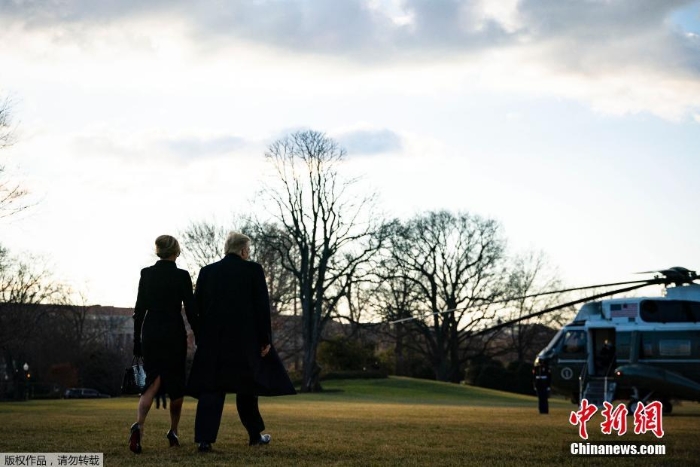 當(dāng)?shù)貢r間2021年1月20日,美國華盛頓,特朗普提前離開白宮,他及妻子梅拉尼婭乘“海軍陸戰(zhàn)隊一號”總統(tǒng)專用直升機,前往安德魯斯空軍基地。