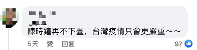 島內(nèi)網(wǎng)友在臉書紛紛認為“防疫高官無能才會累死一線醫(yī)護人員”、“陳時中再不下臺,臺灣就完蛋了”……