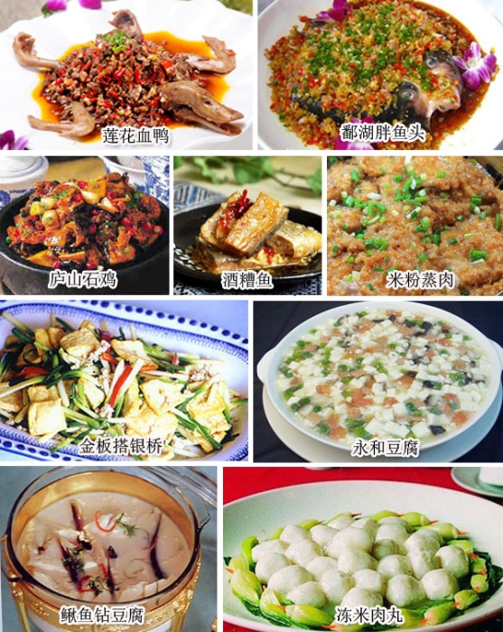 九江地方的贛菜流派以燉、蒸和魚席為代表性特色,如“廬山石雞”、“鄱湖胖魚頭” 等。