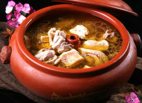 早在清代乾隆年間,汽鍋雞就流行在滇南一帶。相傳是臨安府(今建水縣)福德居廚師楊瀝發(fā)明的吃法。那年皇帝巡視監(jiān)安,知府為取悅天子,發(fā)出布告征求佳肴,選中的賞銀50兩。楊瀝家貧,老母病重,為得重賞,他綜合了當(dāng)?shù)爻曰疱伜驼麴z頭的方法,創(chuàng)造了汽鍋,又不顧生命危險(xiǎn),爬上燕子洞頂采來燕窩,想做一道燕窩汽鍋雞應(yīng)征。不料汽鍋被盜,楊瀝被問欺君之罪,要?dú)㈩^。幸而皇帝問明真相,免楊瀝一死,并把福德居改名為“楊瀝汽鍋雞”。從此汽鍋雞名聲大振,成滇中名菜。那時(shí)汽鍋雞的做法很簡(jiǎn)單,但味道很醇正。