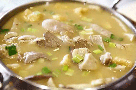 清代《淞南樂府》載:“淞南好,風(fēng)味舊曾諳。羊胛開尊朝戴九,豚蹄登席夜徐三,食品最江南。羊肆向惟白煮,戴九(人名)創(chuàng)為小炒,近更為糟者為佳。徐三善煮梅霜豬腳。邇年肆中以缽貯糟,入以豬耳腦、舌及肝、肺、腸、胃等,曰‘糟缽頭’,邑人咸稱美味?!钡角宕饩w年間,上海老板店和德興館等本幫菜館烹制的“糟缽頭”已盛名滬上。近百年來,此菜幾經(jīng)改革,從40年代起,因原來制法已不能適應(yīng)顧客需要,就將原來用生豬內(nèi)臟加香糟逐只蒸制,改為用熟豬內(nèi)臟,加火腿、筍片待入砂鍋,加鮮湯、香糟鹵燉制而成。它制法簡易,迅速方便,又不失原來特色。