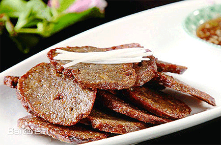 很久以前,陽(yáng)城有個(gè)姓甘的縣丞,他巧取豪奪,搞得民不聊生。南城墻下住著三兄弟,老大以殺豬、賣(mài)肉為生,老二以賣(mài)菜為業(yè)。老三從小好讀書(shū),是城內(nèi)少有的才子。隆冬晚間,有王屋山下的學(xué)友來(lái)訪,老三因家中米無(wú)半粒、菜無(wú)片葉,無(wú)以招待。想去老大家討些肉食,無(wú)奈老大家只剩半葉豬肝;轉(zhuǎn)到老二家,老二的菜已賣(mài)盡,筐中只有幾瓣大蒜。老三拿著往家返,一路尋思:在陽(yáng)城,豬下水(內(nèi)臟)是從來(lái)不吃的,更不用說(shuō)招待客人了,這該如何是好……回到家中,他讓內(nèi)人將豬肝和大蒜洗凈、剁碎,揉在一塊。用菜葉包住蒸熟后,切成片。老三與客人每人拿一根竹簽,圍坐在火爐旁烤著吃。頓時(shí),蒜香味、肝香味彌漫在空中??腿顺灾@外焦里嫩的食品,大呼:美!問(wèn)老三菜名,老三沉思片刻,想著縣丞的無(wú)情、嘆百姓的清苦,為泄心中之憤,脫口而出:燒甘(肝)!從此,燒肝就迅速在陽(yáng)城流傳開(kāi)來(lái),并逐漸改進(jìn)制作方法,成為陽(yáng)城的一道名吃。