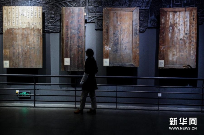1月26日,李若雪在遵義會(huì)議陳列館內(nèi)查看紅軍木板標(biāo)語(yǔ)的狀況。新華社記者 歐東衢攝