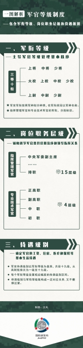 吳謙:新的軍官制度對軍官等級設(shè)置作出重大改革,由基于職務(wù)等級調(diào)整為基于軍銜等級。新的軍官軍銜設(shè)“三等十銜”,將官分為上將、中將、少將,校官分為大校、上校、中校、少校,尉官分為上尉、中尉、少尉。軍官軍銜按照軍種劃分種類,在軍銜前冠以軍種名稱。指揮管理軍官和專業(yè)技術(shù)軍官的軍銜,分別標(biāo)識。