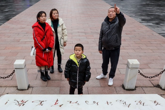 1月25日,楊愛民在遵義紅軍烈士陵園內(nèi)為游客宣講“紅軍烈士紀念碑”的歷史。新華社記者 歐東衢 攝