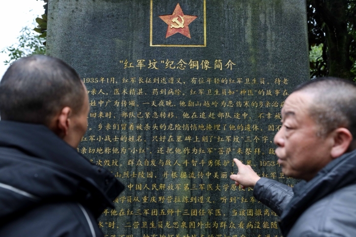 遵義紅軍烈士陵園集中了新中國成立后在遵義各處找到的紅軍遺骨。莊嚴肅穆的烈士陵園內(nèi),紅軍戰(zhàn)士的雕像被蒼松翠柏環(huán)繞。