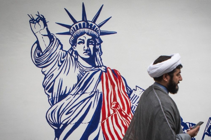 2019年11月4日,行人從伊朗首都德黑蘭街頭的反美宣傳畫前走過。(新華社發(fā),艾哈邁德·哈拉比薩斯攝)