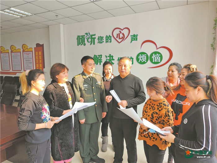 區(qū)雙擁辦領(lǐng)導(dǎo)向軍嫂講解有關(guān)隨軍家屬就業(yè)、軍人子女入學(xué)的創(chuàng)新舉措。姜玉坤攝