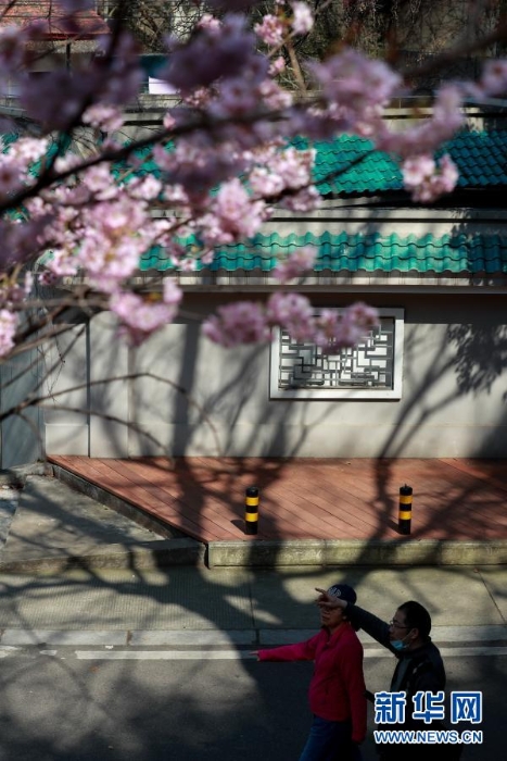早春時節(jié),武漢大學(xué)早櫻綻放,花香在校園內(nèi)飄蕩。