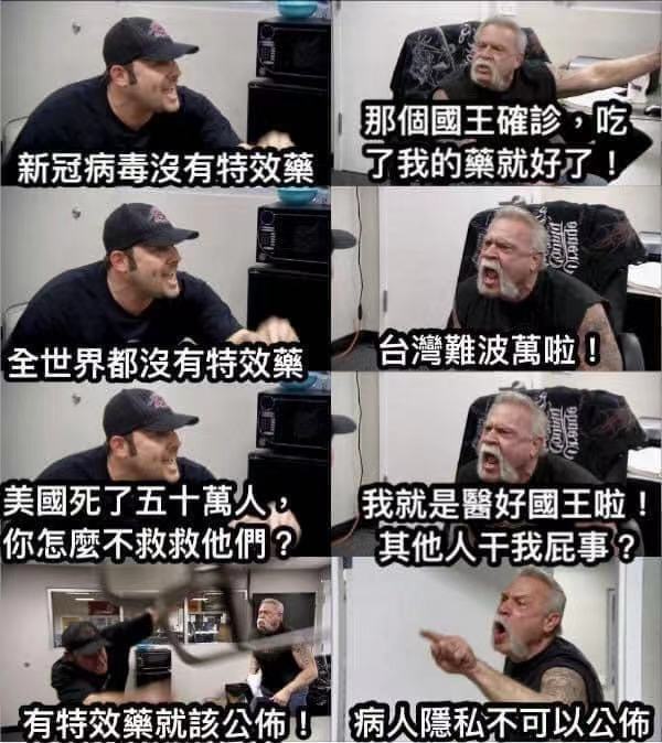 具體是什么藥物,國王并沒有透露。臺當(dāng)局指揮中心指揮官陳時中也守口如瓶,他表示,“使用藥物這屬于病人病歷的一部分,除非當(dāng)事人要公布,否則我們是不能去公布,這些相關(guān)的治療過程。”