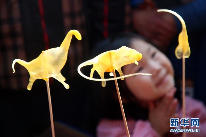 2月23日,江蘇省常州市機械二村社區(qū)的小朋友在觀看吹糖人技藝。新華社發(fā)(陳暐 攝)