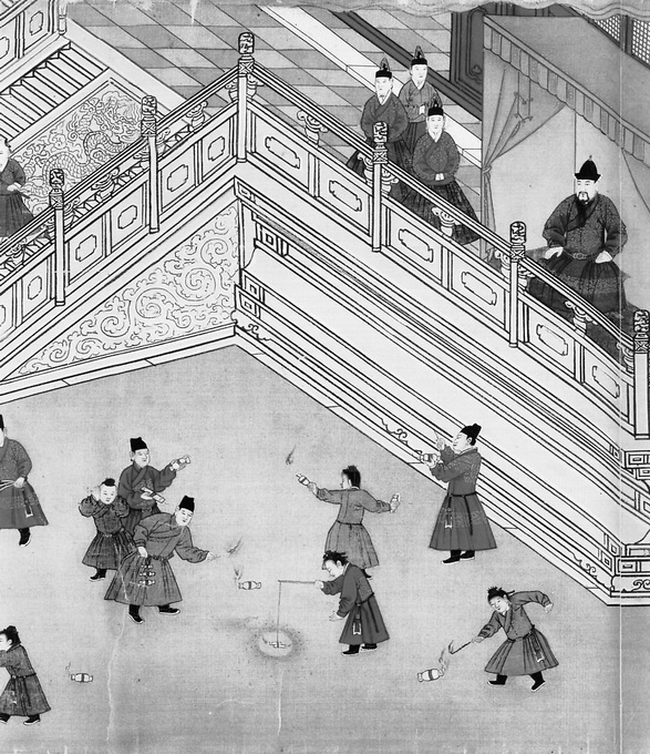 明代元宵節(jié)時,京城家家戶戶懸掛五色彩燈,其上繪有翩翩起舞的各色人物、花鳥魚蟲,競相爭艷。燈市上還有笙簫鼓樂表演、雜耍以及放煙火的小攤販等,五顏六色的煙火與彩燈相映成輝,可謂火樹銀花不夜天。