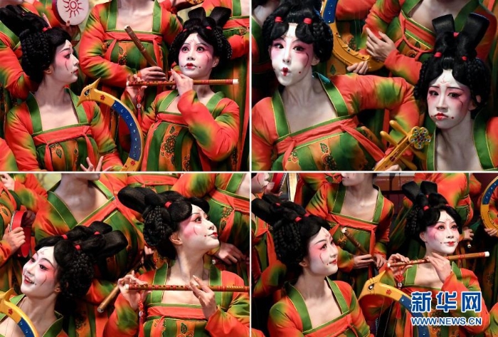 鄭州歌舞劇院的演員在河南博物院錄制元宵奇妙夜節(jié)目(拼版照片,2月20日攝)。新華社記者 李安 攝