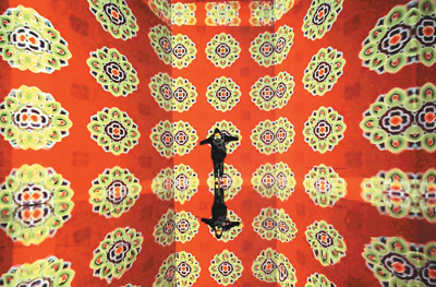 展廳的中心區(qū)域設(shè)有互動體驗(yàn)區(qū),將古代服飾文化與現(xiàn)代科技有機(jī)結(jié)合,帶給觀眾有趣的體驗(yàn)。一個(gè)柱坊結(jié)構(gòu)的閉合式沉浸空間里,以萬花筒形式展現(xiàn)了古代服飾中提取的花紋圖案,讓觀眾沉浸于流光溢彩的“華紋錦繡”中。多媒體互動“換衣鏡”能讓人過一把穿越的癮,格外受觀眾歡迎。站在智能電子屏前揮揮手,屏幕中的自己就能穿上不同時(shí)代的服飾,掃描二維碼還能把古裝圖片保存到手機(jī)上。