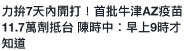 而臺灣民眾則對此憂慮重重紛紛在網(wǎng)上呼吁島內(nèi)政治人物先打,呼聲最高的要屬臺灣地區(qū)領(lǐng)導(dǎo)人蔡英文與臺疫情指揮中心陳時(shí)中。臺網(wǎng)友紛紛發(fā)問:“蔡英文有要打嗎?”“衛(wèi)福部長不身先士卒嗎?”