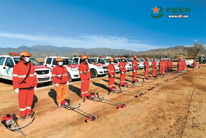 2月下旬,山西省五臺(tái)縣人武部組織民兵開(kāi)展森林滅火演練,著力提高民兵應(yīng)急分隊(duì)?wèi)?yīng)急處置能力。馬 明攝