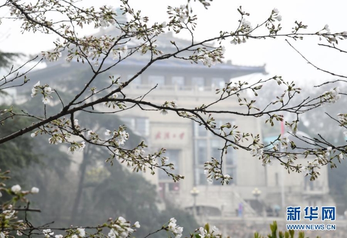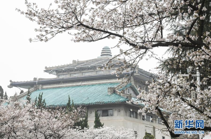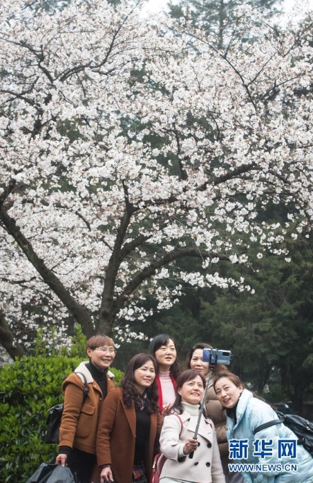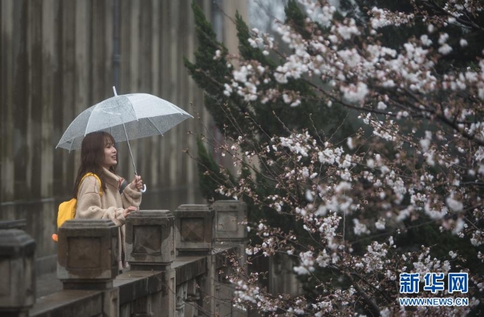 這是3月8日在武漢大學(xué)拍攝的櫻花。