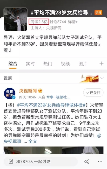中國青年網(wǎng)、中國火箭軍等官方大V報(bào)道后