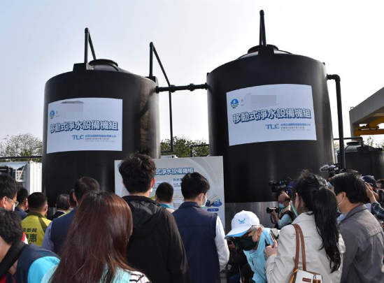 為因應(yīng)苗栗水庫缺水,臺灣水利部門緊急調(diào)派2部RO級凈水設(shè)施進(jìn)駐竹南水資源處理中心(謝明俊攝)圖片來源:臺灣《中國時報》