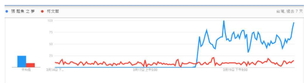 《聲量看政治》粉專21日PO文指出,統(tǒng)計(jì)分析發(fā)現(xiàn),“張鮭魚之夢”在3月18日的聲量開始超越臺北市長柯文哲,3月19日下午1點(diǎn)來到最高點(diǎn)。