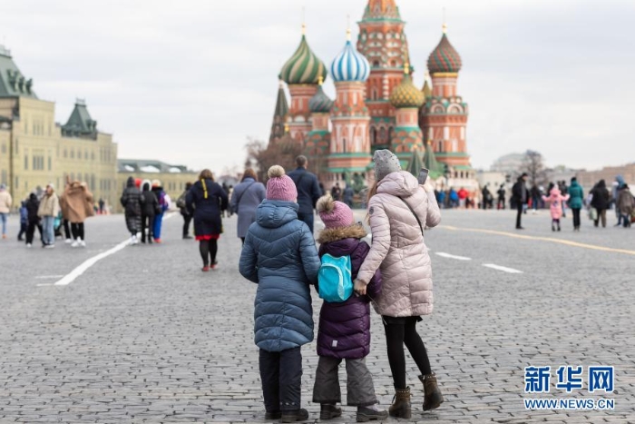 3月23日,在俄羅斯首都莫斯科,人們走在紅場附近。