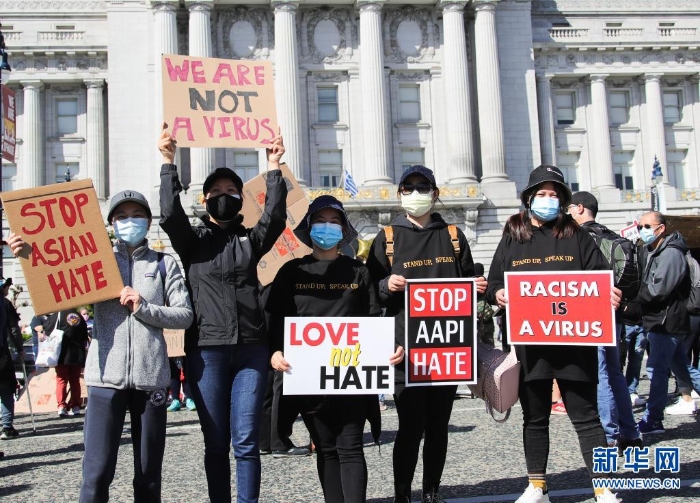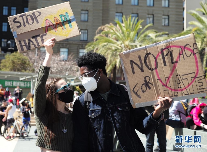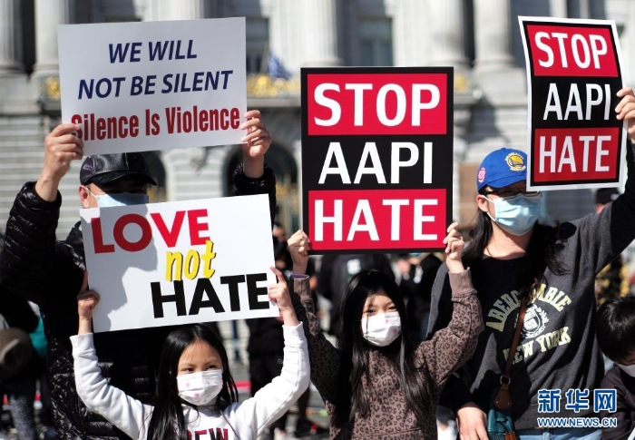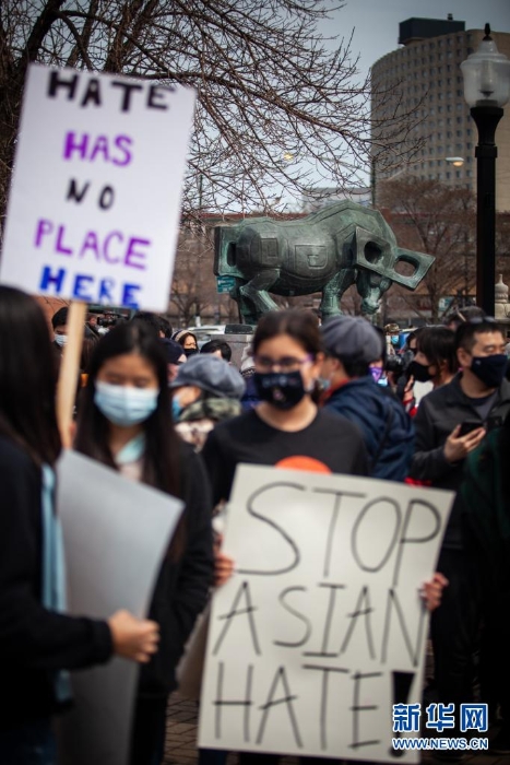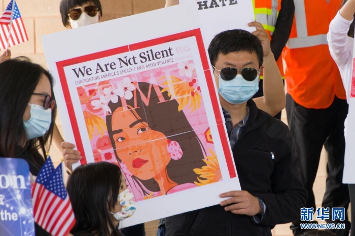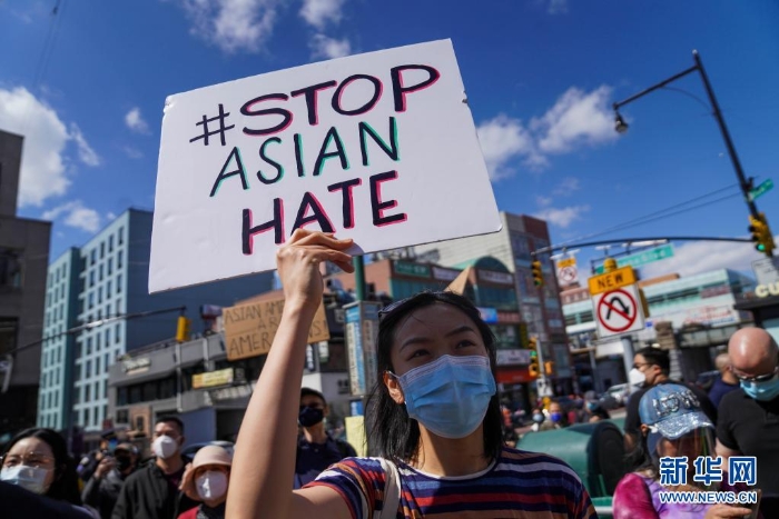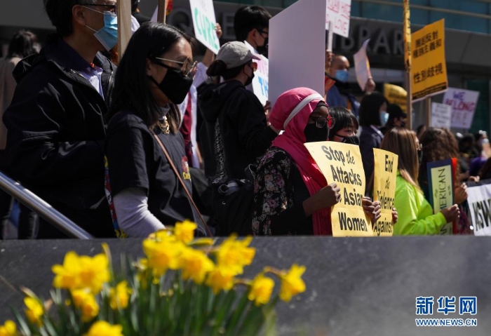 當(dāng)日,美國多地民眾舉行游行集會,抗議針對亞裔的歧視和仇恨犯罪。