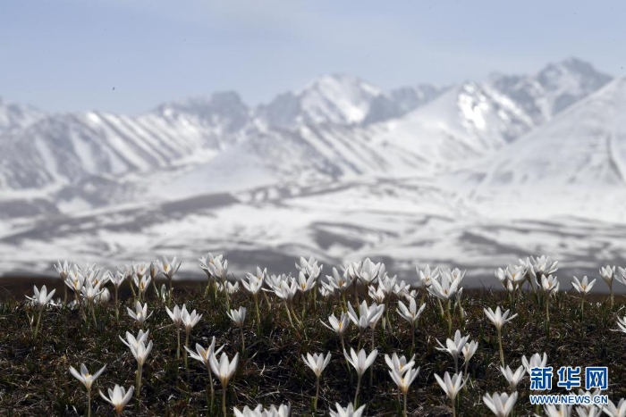 新疆“空中草原”那拉提景區(qū),雪山腳下的野百合隨著冰雪逐漸消融破冰而出,在涓涓雪水的滋養(yǎng)下悄然綻放(2019年4月4日攝)。新華社記者 沙達(dá)提 攝