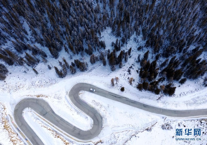 新疆可可托海景區(qū)銀裝素裹,景色迷人(2020年12月29日攝,無人機(jī)照片)。新華社記者 沙達(dá)提 攝