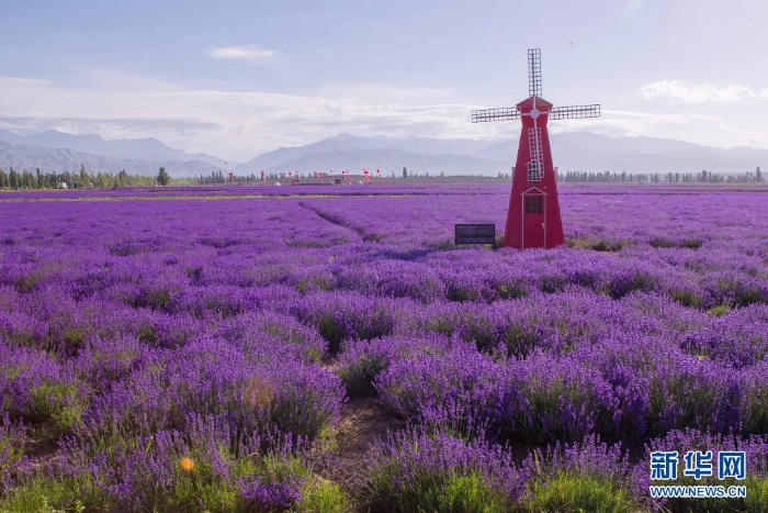 新疆伊犁哈薩克自治州霍城縣的薰衣草花田(2017年6月17日攝)。新華社記者 岑云鵬 攝