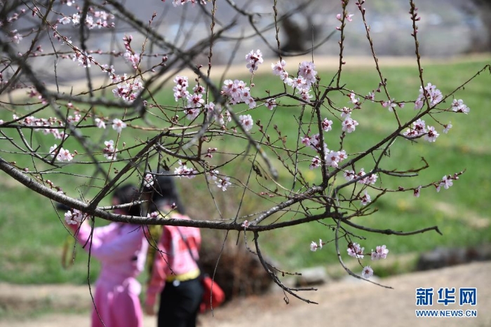 3月28日,游客們來(lái)到西藏自治區(qū)林芝市索松村欣賞桃花。新華社記者 孫瑞博 攝