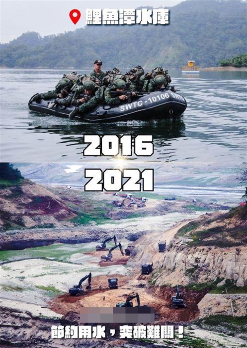 臺(tái)當(dāng)局防務(wù)部門(mén)發(fā)言人表示,一個(gè)5年前曾在鯉魚(yú)潭水庫(kù),執(zhí)行陸軍突擊兵干部訓(xùn)練班“水域作戰(zhàn)”的學(xué)員發(fā)出感嘆,面對(duì)嚴(yán)峻的水情,拜托大家一起省水,一起度過(guò)極端氣候的難關(guān)!