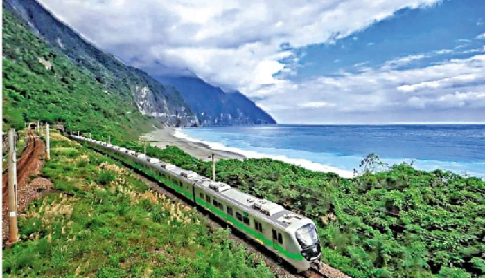 圖:被譽(yù)為臺(tái)鐵“最美區(qū)間車(chē)”的電聯(lián)車(chē)四月一日在基隆火車(chē)站首航。\中央社