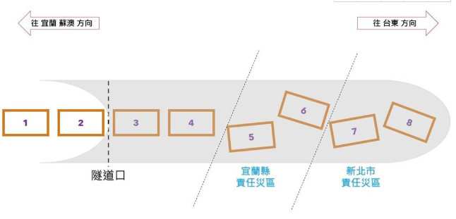現(xiàn)場一張圖清楚指出,受創(chuàng)最嚴重的第8、第7節(jié)車廂嚴重變形;這兩節(jié)車廂也是死亡人數(shù)最多的地方。第6、第5節(jié)車廂同時有多人受困,警消必須分組分從隧道兩端進入。