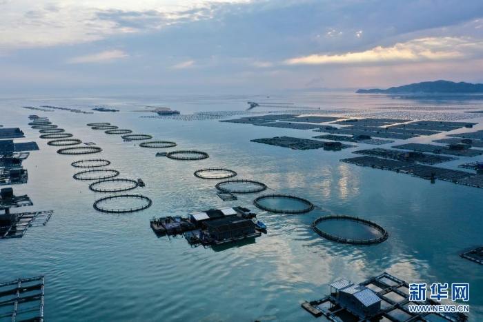 福建省東山縣陳城鎮(zhèn)海上水產(chǎn)養(yǎng)殖區(qū)(2020年3月26日攝,無人機(jī)照片)。東山縣是全國(guó)水產(chǎn)品加工出口大縣,2019年全縣水產(chǎn)品總產(chǎn)量44萬噸,其中海水養(yǎng)殖產(chǎn)量27.6萬噸。